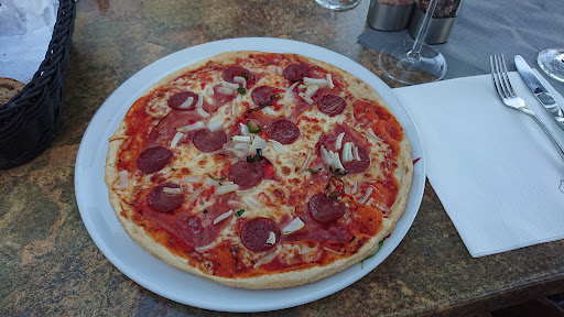 Nice location and friendly staff. Food is good, but you shouldn't eat pizza there. Unfortunately it looks and tastes like frozen pizza. Totally carelessly prepared - see photo. Rarely have I had such a bad pizza. The rest of the food was otherwise always good, but nothing special. You probably won't see us here anymore.